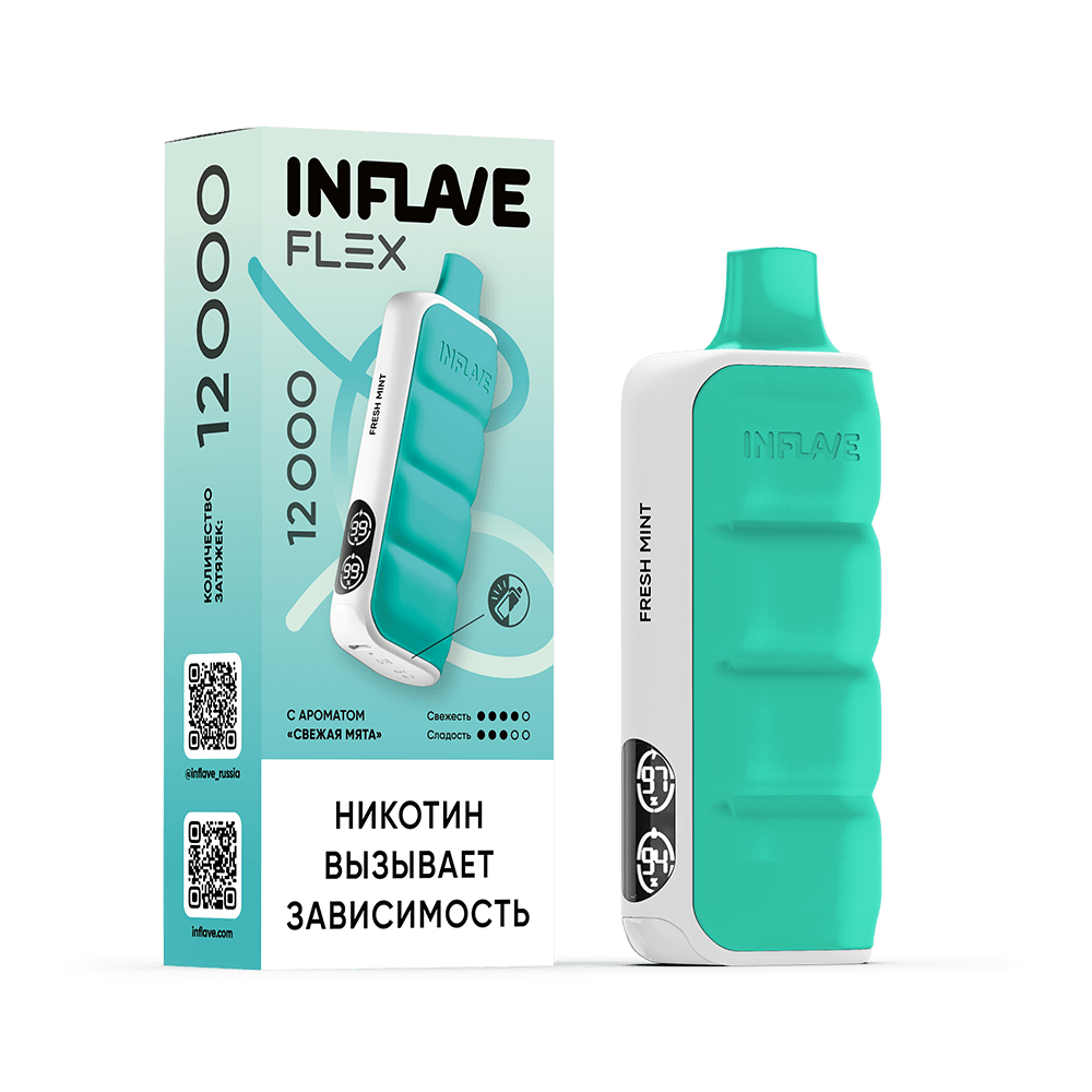 | Количество затяжек, шт12000 | Крепость, %2 | ЛинейкаINFLAVE FLEX 12000 |
